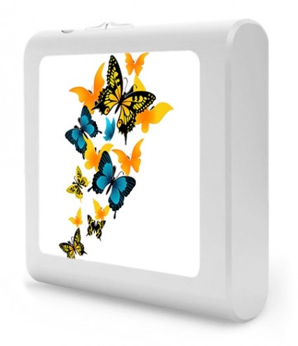 - ADJUSTABLE BRIGHTNESS - Our LED night light features a step less adjustment slider to adjust the brightness from 0 LM to 15 LM. You are able to set your desired brightness for different occasions to provide the best lighting experience. Beautifully printed Blue and Yellow Butterflies image.