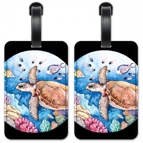 - Coral Reef Water Color image printed in colorful high resolution on two vinyl PU leather luggage tags.