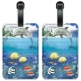 - Dolphin and Fish image printed in colorful high resolution on two vinyl PU leather luggage tags.