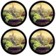 Set of four (4) unique printed silicone and absorbent felt drink coasters that prevent drips, puddles, and water stains to your fine furniture. Suitable for indoors or outdoors. Works great for hot or cold drinks. Perfect for high humidity locations.