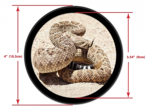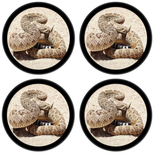 Add some color to your plain boring drink coasters. 1,488 different colorful designs to choose from. Easily stackable when not in use. Size is 4†in diameter and 0.4†thick. Printed with colorful image of Rattle Snake