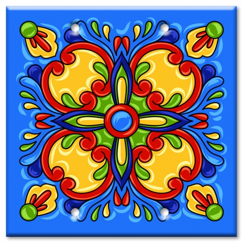 - MADE IN THE USA: Blue Mexican Talavera Tile Print Decorative Printed Two Gang Blank Wall Plate. Image printed on a solid metal Switch Plate Cover.