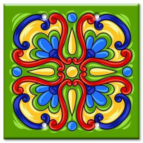 - MADE IN THE USA: Green Mexican Talavera Tile Print Decorative Printed Two Gang Blank Wall Plate. Image printed on a solid metal Switch Plate Cover.