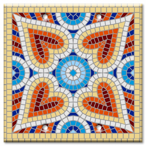 - MADE IN THE USA: Yellow Spanish Mosaic Tile Print Decorative Printed Two Gang Blank Wall Plate. Image printed on a solid metal Switch Plate Cover.