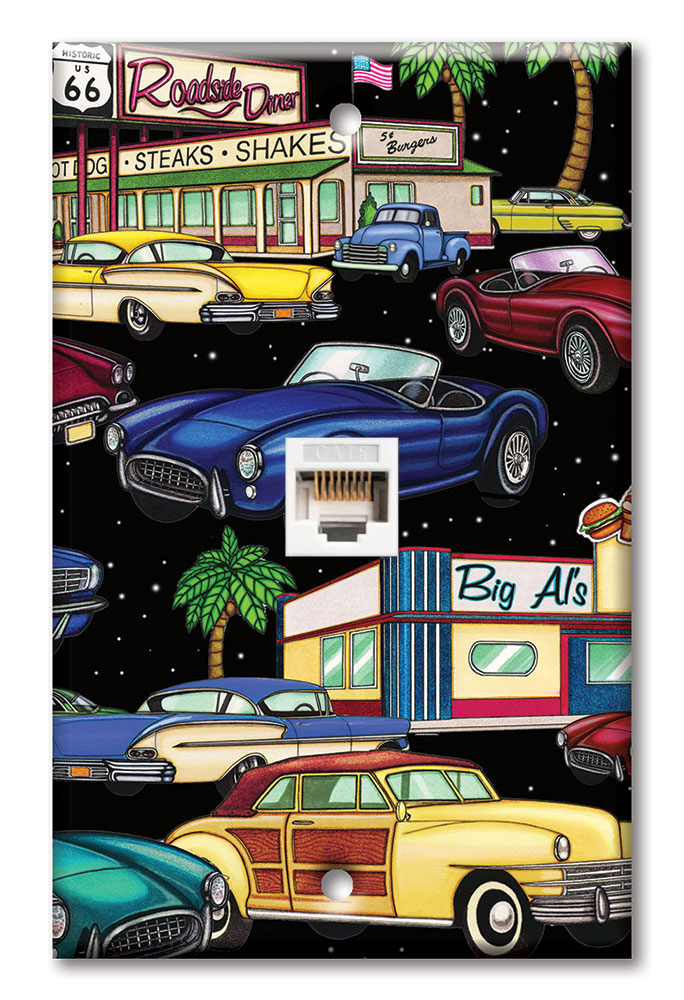Car themed RJ11 Phone Jacks, RJ45 CAT5e / CAT6 Ethernet Jacks, and F Type Cable Jacks