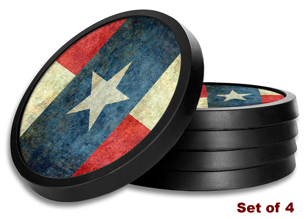 Travel and Americana themed Set of 4 Silicone Drink Coasters with Removable Absorbent Felt Inserts