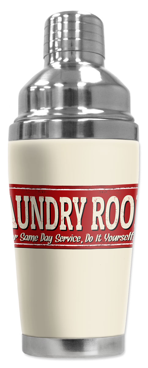 Laundry Room themed Mugzie 16 ounce and 20 ounce stainless steel Cocktail and Martini Shakers with neoprene wet suit cover