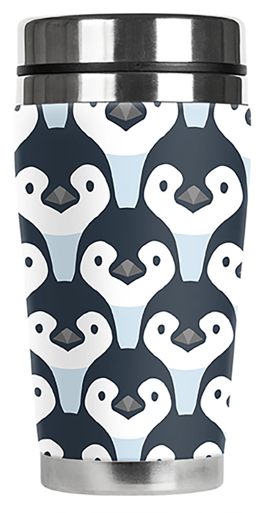 Animal themed Mugzie 16 ounce and 20 ounce stainless steel travel mugs with neoprene wet suit cover