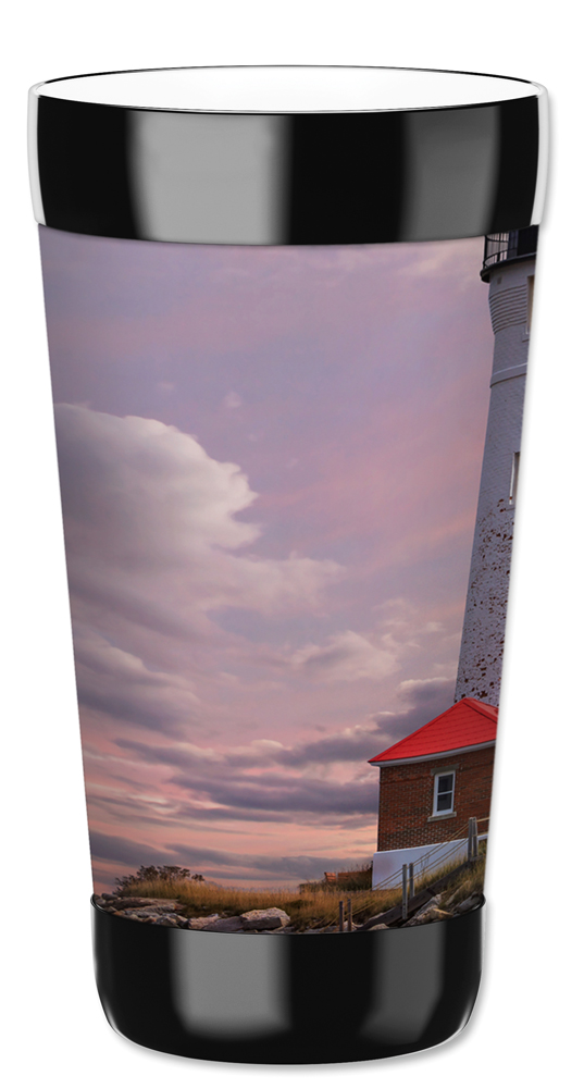 Lighthouse themed 16 ounce and 12 ounce Drink Cups with removable neoprene wet suit cover lighthouse printed images